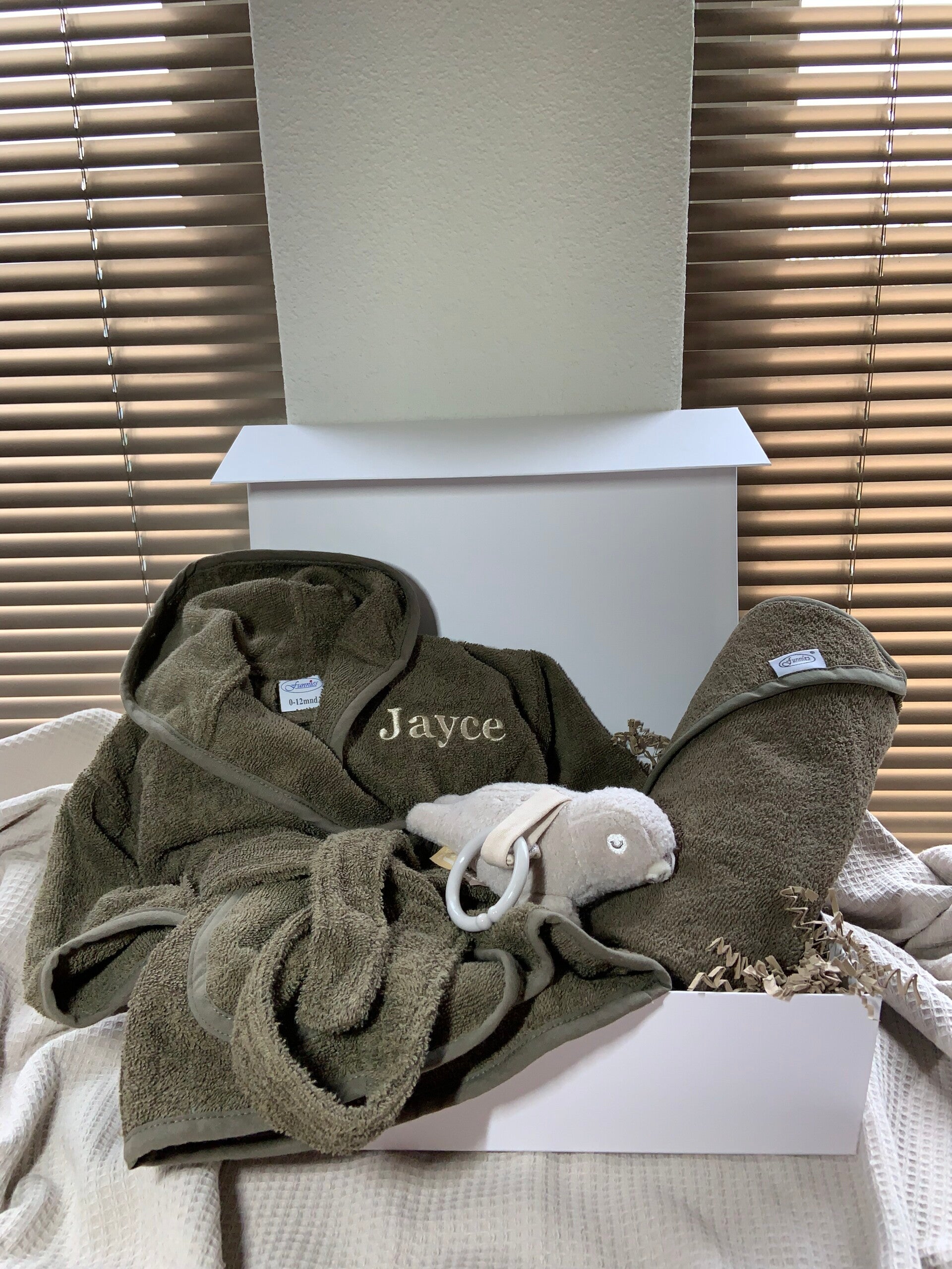 Wil je de badjas nóg leuker maken? Laat ‘m personaliseren met de naam van de baby! We borduren de naam met zorg in de stof.
