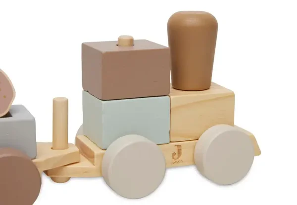 Tjoek, tjoek: daar gaat de trein! Deze leuke houten speelgoed trein van Jollein heeft meerdere speelmogelijkheden. Natuurlijk kan de houten trein rijden. De locomotief en twee wagonnetjes zitten goed aan elkaar vast en zijn ook van elkaar los te halen. Je kindje kan al snel een wagon losmaken en hij zal de fijne motoriek flink moeten trainen om de wagon weer vast te maken.