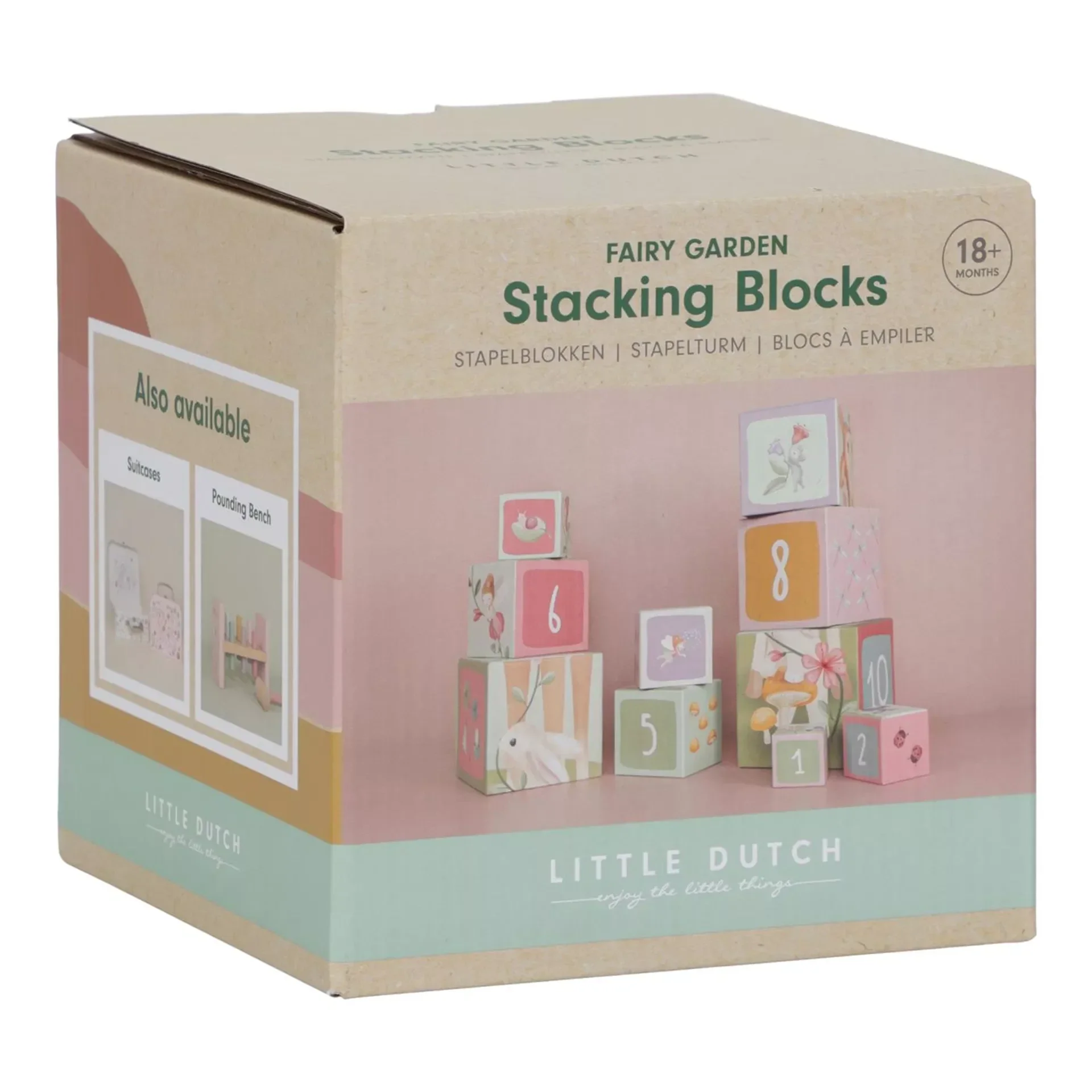 Creëer een weelderige bloementak die wordt bewoond door de mooiste boswezens. Sorteer ze op twee manieren door te tellen, of verzamel alle afbeeldingen uit de magische tuin. Kinderen leren spelenderwijs tot 10 te tellen met deze stapelblokken. De blokken zijn voorzien van prachtige illustraties uit de Fairy Garden-collectie, waaronder herten, konijntjes, egels, feeën, lieveheersbeestjes en vrolijke bloemen. Om ze gemakkelijk op te bergen, passen de kleine blokjes in de grotere. Gemaakt van stevig karton, kunnen de blokken tegen een stootje. Het kleinste blokje meet 5 cm en de grootste is 14 cm.