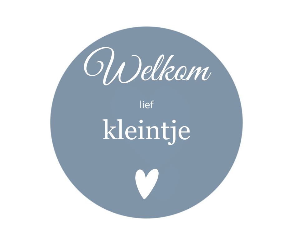 - Rond Forex bordje van 20 cm met de tekst "Welkom lief kleintje", bedrukt in witte letters.