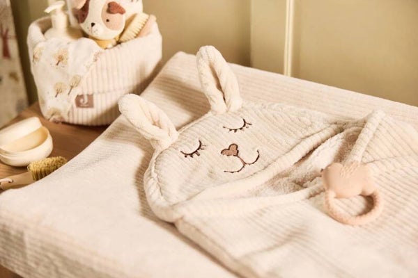 Het "CLOUDY RIB MANDJE" is een opbergmand van het merk Jollein bekend om zijn zachte ribstof en moderne, neutrale uitstraling. Het wordt vaak gebruikt om verzorgingsproducten op de commode te organiseren, maar kan ook dienen voor speelgoed, boeken en andere spullen in de babykamer.