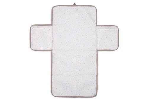 De "verschoningsmat Cloudy Rib" van het merk Jollein is een stijlvolle, opvouwbare en draagbare verschoningsmat, gemaakt van zachte ribstof. Verkrijgbaar in elegante kleuren zoals Oatmeal en Milky Coffee, combineert deze mat comfort met functionaliteit. Dankzij de waterafstotende binnenzijde en handige opbergvakken voor luiers en doekjes is dit een praktische keuze voor ouders. Bovendien is de mat eenvoudig schoon te maken en compact op te vouwen, wat het een onmisbaar accessoire maakt voor onderweg.