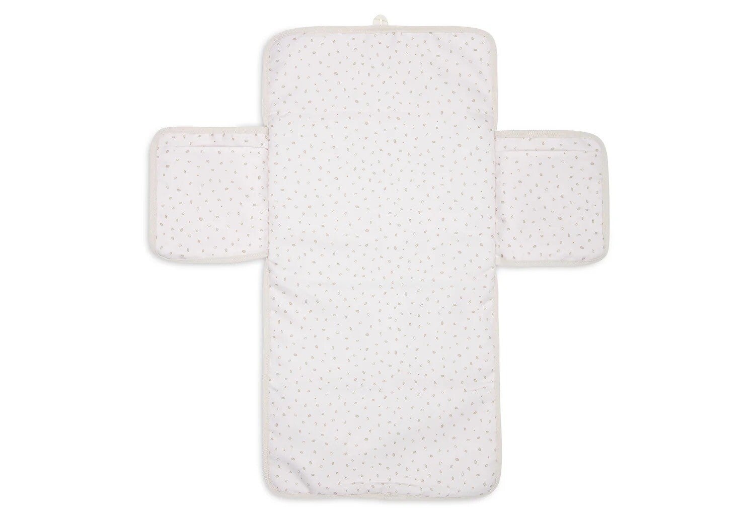 De "verschoonmat cloudy rib" is een opvouwbare, draagbare verschoonmat van het merk Jollein, gemaakt van zachte ribstof, die verkrijgbaar is in verschillende kleuren zoals oatmeal en Milky Coffee. Het is ontworpen voor comfort en praktische bruikbaarheid, met een waterafstotende binnenzijde en handige opbergvakken voor luiers en doekjes. De mat is gemakkelijk schoon te maken en te sluiten, waardoor het een ideaal accessoire is voor onderweg.