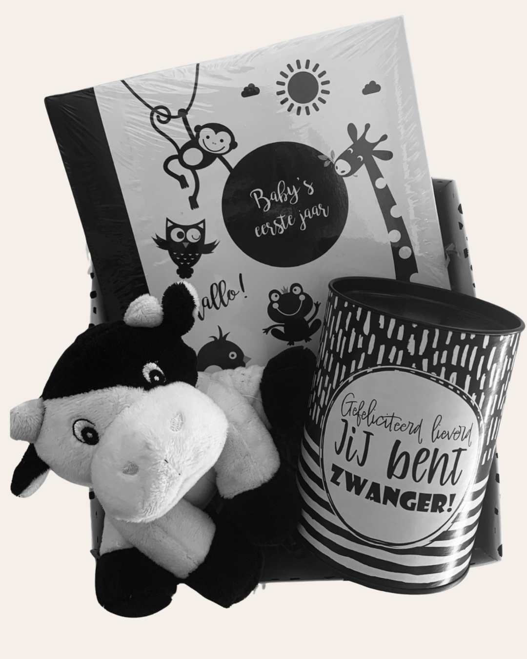Inhoud Geschenkset | Hoera Zwanger | Zwart Wit