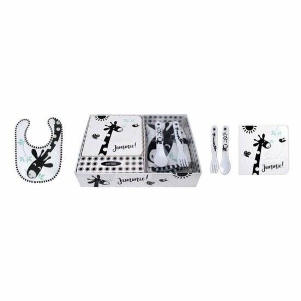 Een leuke cadeaudoos van Hello Baby met als thema eten. Inhoud: een slabbetje, een kartonnen boekje en een bestekset. Een prachtig geschenk waar iedereen - jong en oud - voor valt. Klaar voor de eerste hapjes!