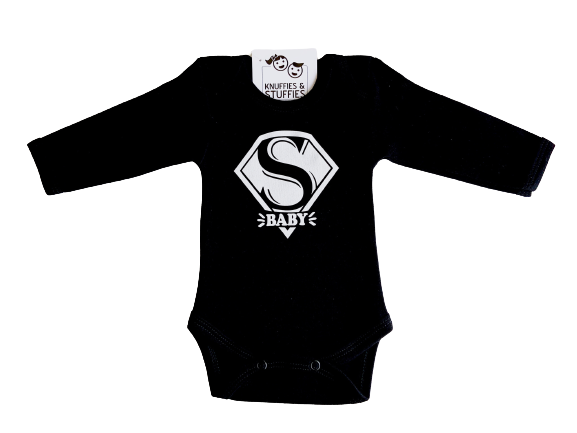 Deze leuke romper met Super Baby printje is éen van onze favorieten. Door de enveloppen hals is hij gemakkelijk over het hoofdje aan en uit te trekken. De drukknoopjes aan de onderkant maken het gemakkelijk de luier van je baby te verschonen.