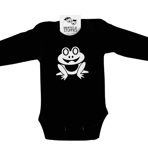 Een schattige romper met kikker printje. Door de enveloppen hals is hij gemakkelijk over het hoofdje aan en uit te trekken. De drukknoopjes aan de onderkant maken het gemakkelijk de luier van je baby te verschonen.